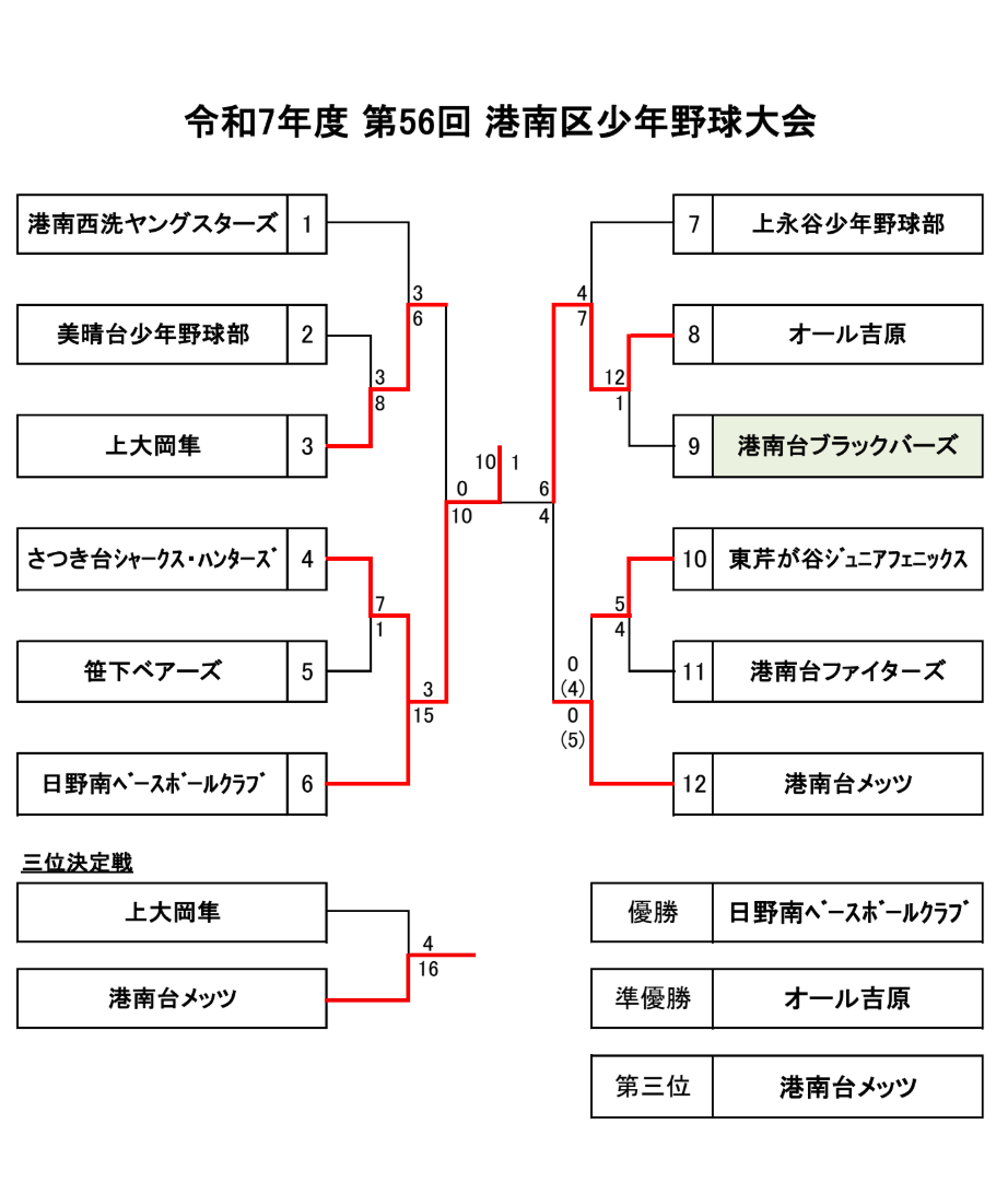 2025年度 第56回 港南区少年野球大会 <試合結果>