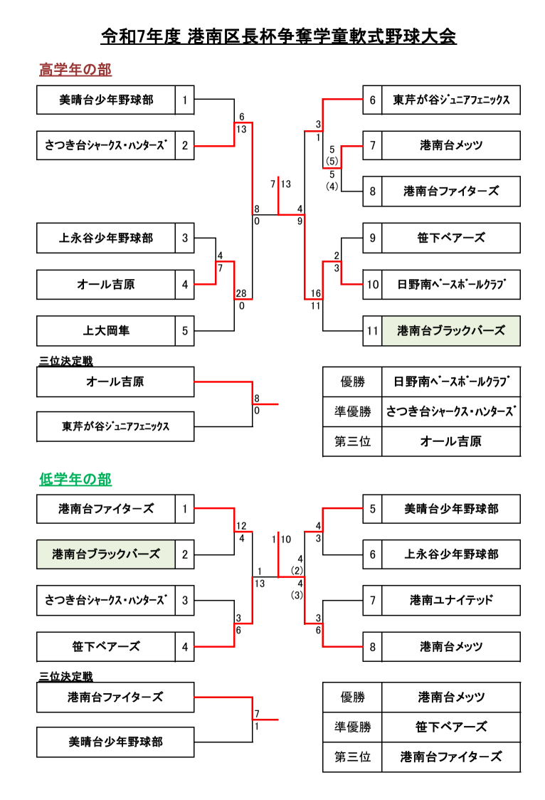 令和7年度 港南区長杯争奪学童軟式野球大会 <試合結果>
