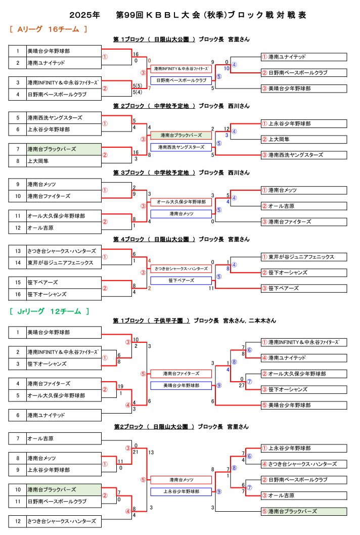 2025年度 第99回 KBBL大会(秋季)ブロック戦 <試合結果>